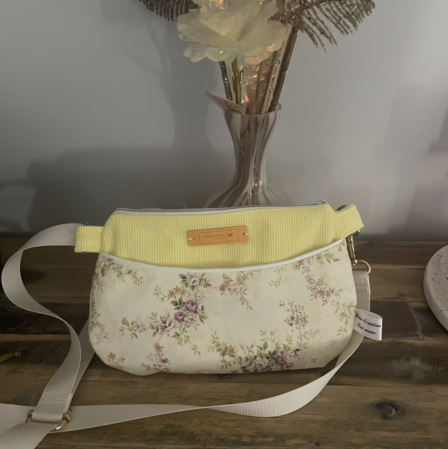 Petit sac bandoulière transformable en pochette. Velours et coton imprimé